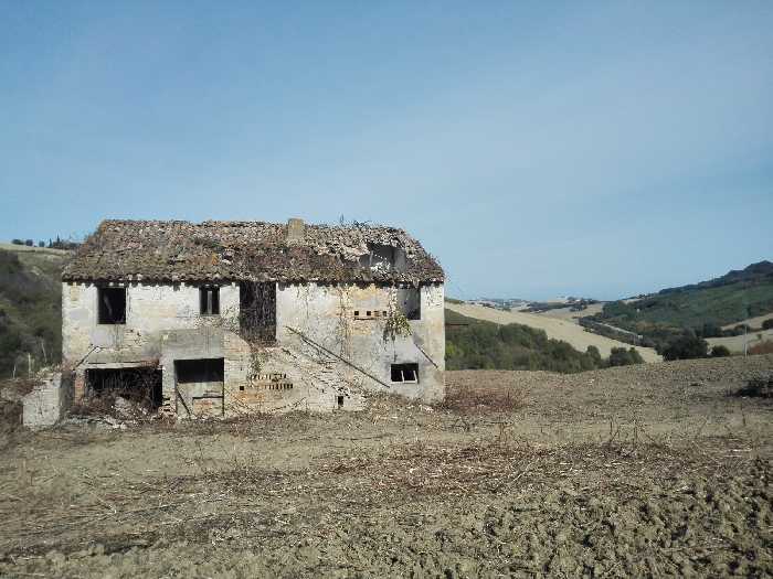 Tipica casa colonica marchigiana su due piani con scala esterna da ristrutturare per mq totali 240 e annesso agricolo.